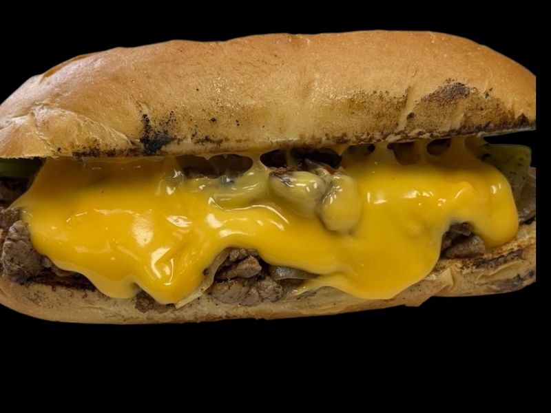 Tender, perfectly seasoned Premium Tri-Blend Philly-style steak with caramelized onions, grilled bell peppers, and creamy melted cheese sauce, served on a toasted rustic hoagie bun. Rich, gooey, and bursting with flavor in every bite.
